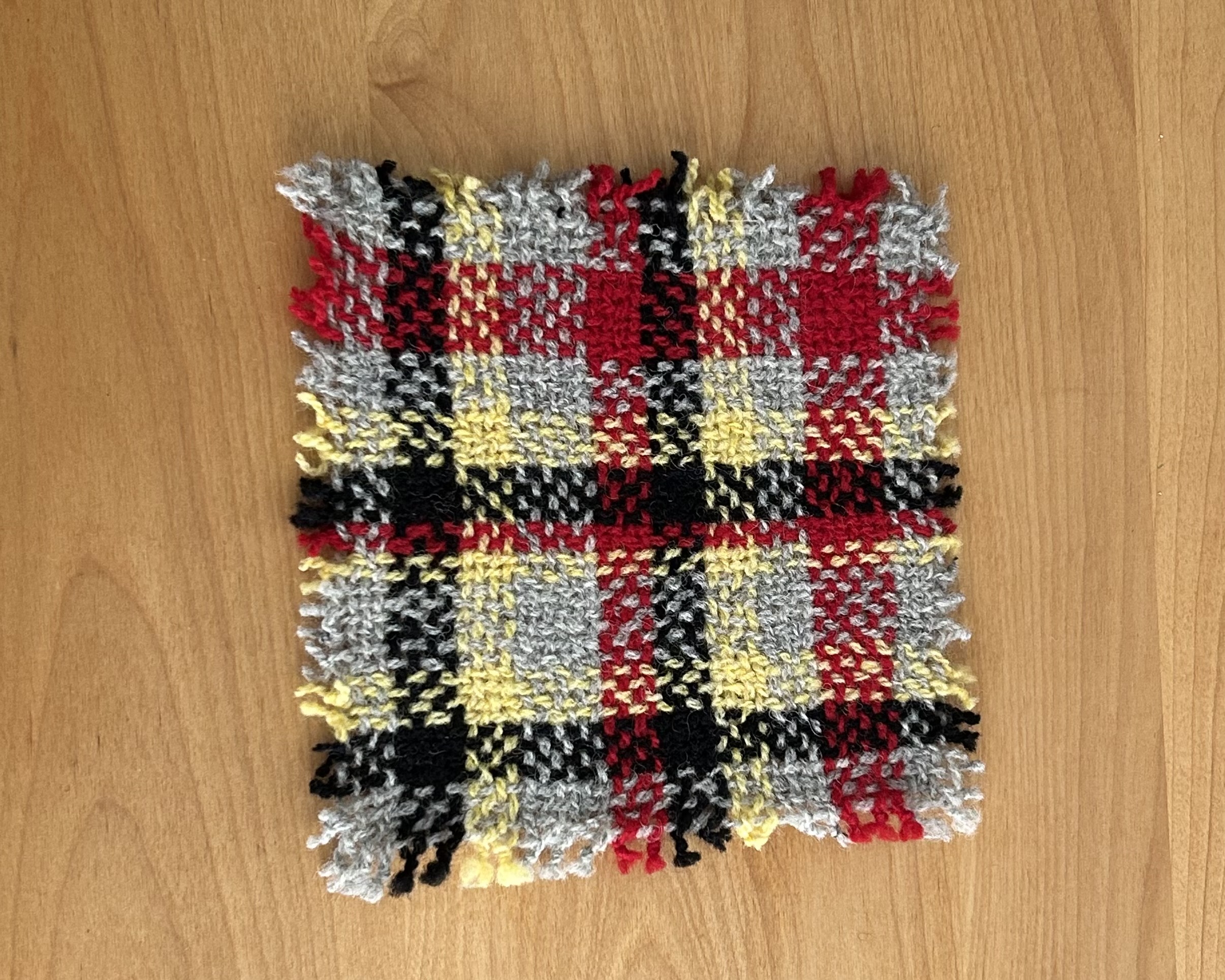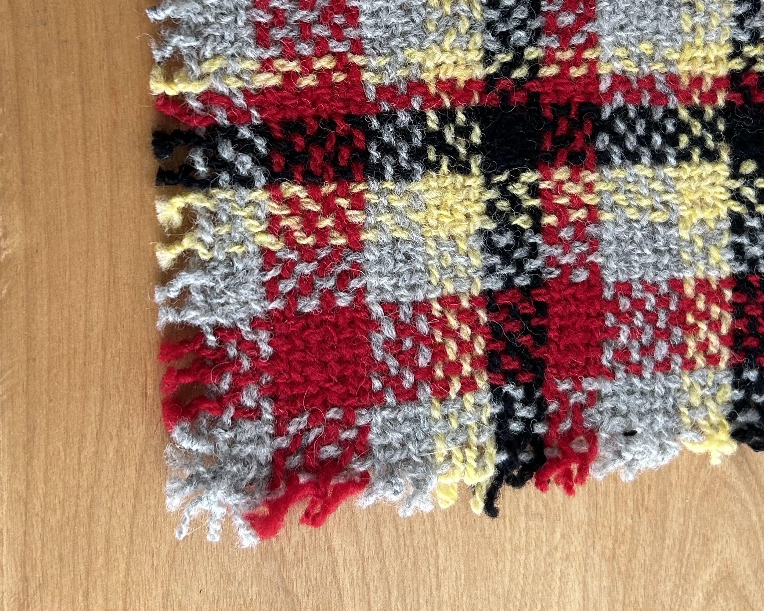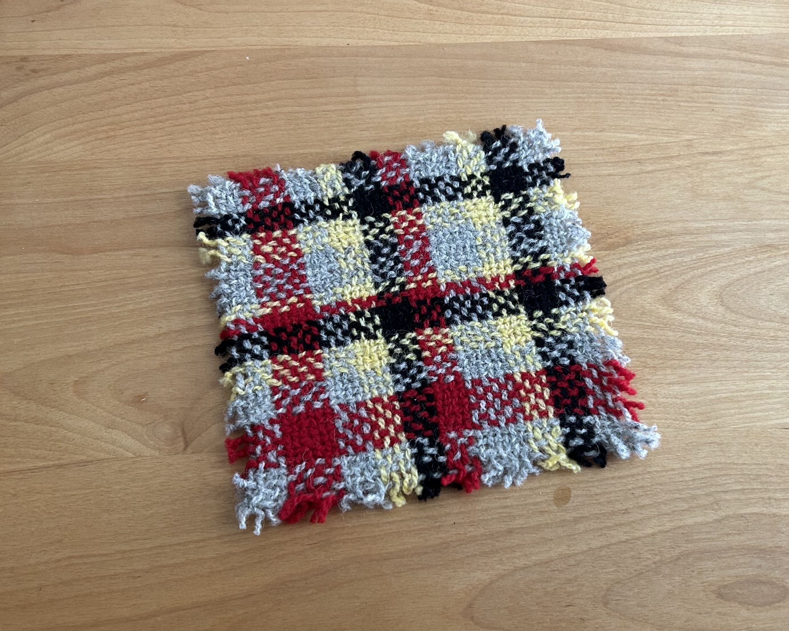 This oversized scrappy wool mug rug is a continuation of my summer of exploring new and old weaving techniques. Additionally, using loom waste from previous projects, these little plaid beauties allow me to adhere to my commitment of using mainly sustainable yarns by using these scraps to reduce my contribution to landfills. In the process, I hope to inspire others to think twice about what they throw away.