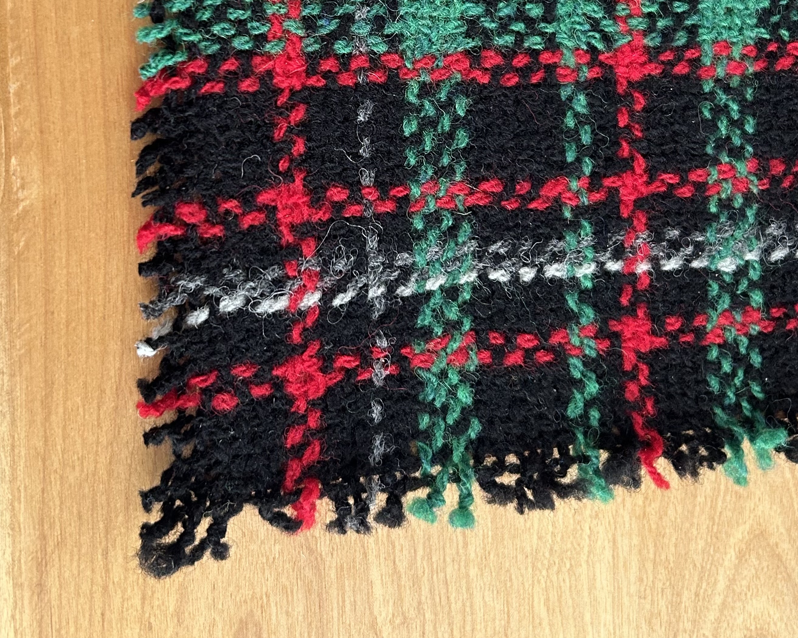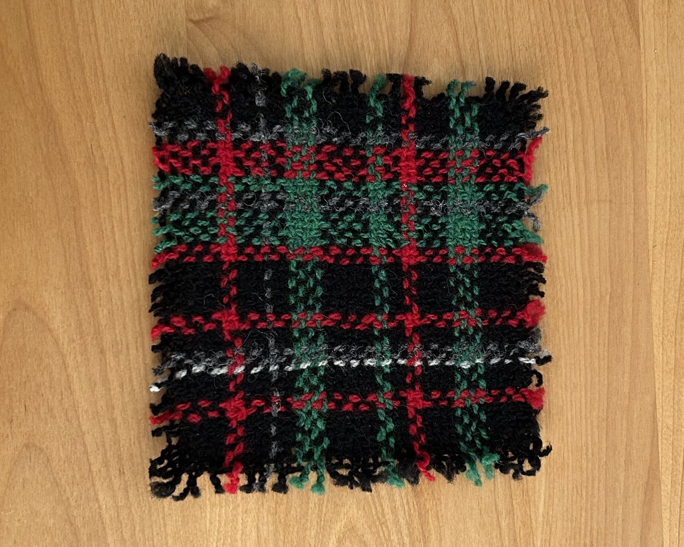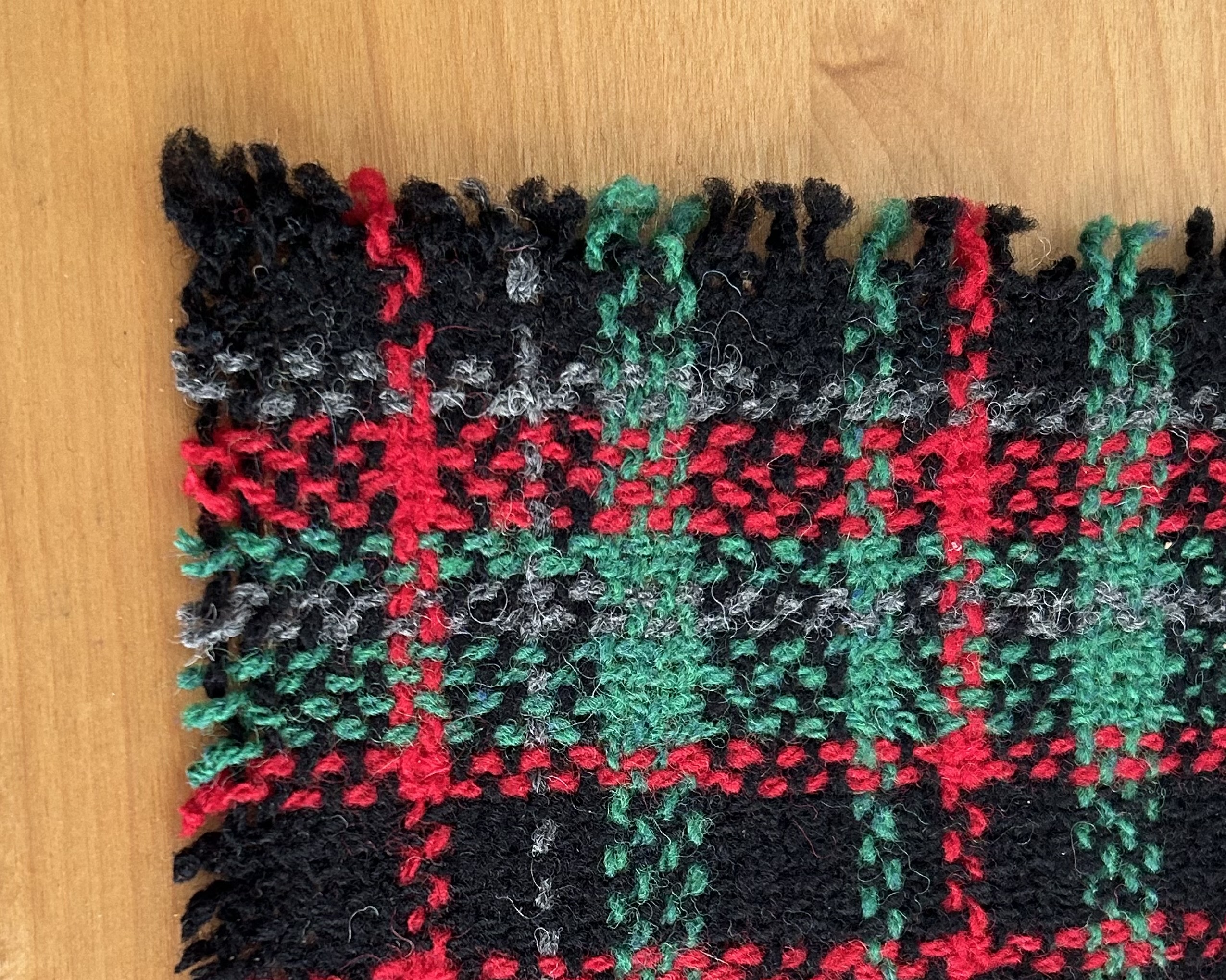 This oversized scrappy wool mug rug is a continuation of my summer of exploring new and old weaving techniques. Additionally, using loom waste from previous projects, these little plaid beauties allow me to adhere to my commitment of using mainly sustainable yarns by using these scraps to reduce my contribution to landfills. In the process, I hope to inspire others to think twice about what they throw away.