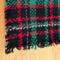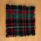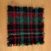 6-inch square felted wool mug rug with a cork base. Woven in a black, green and red plaid.