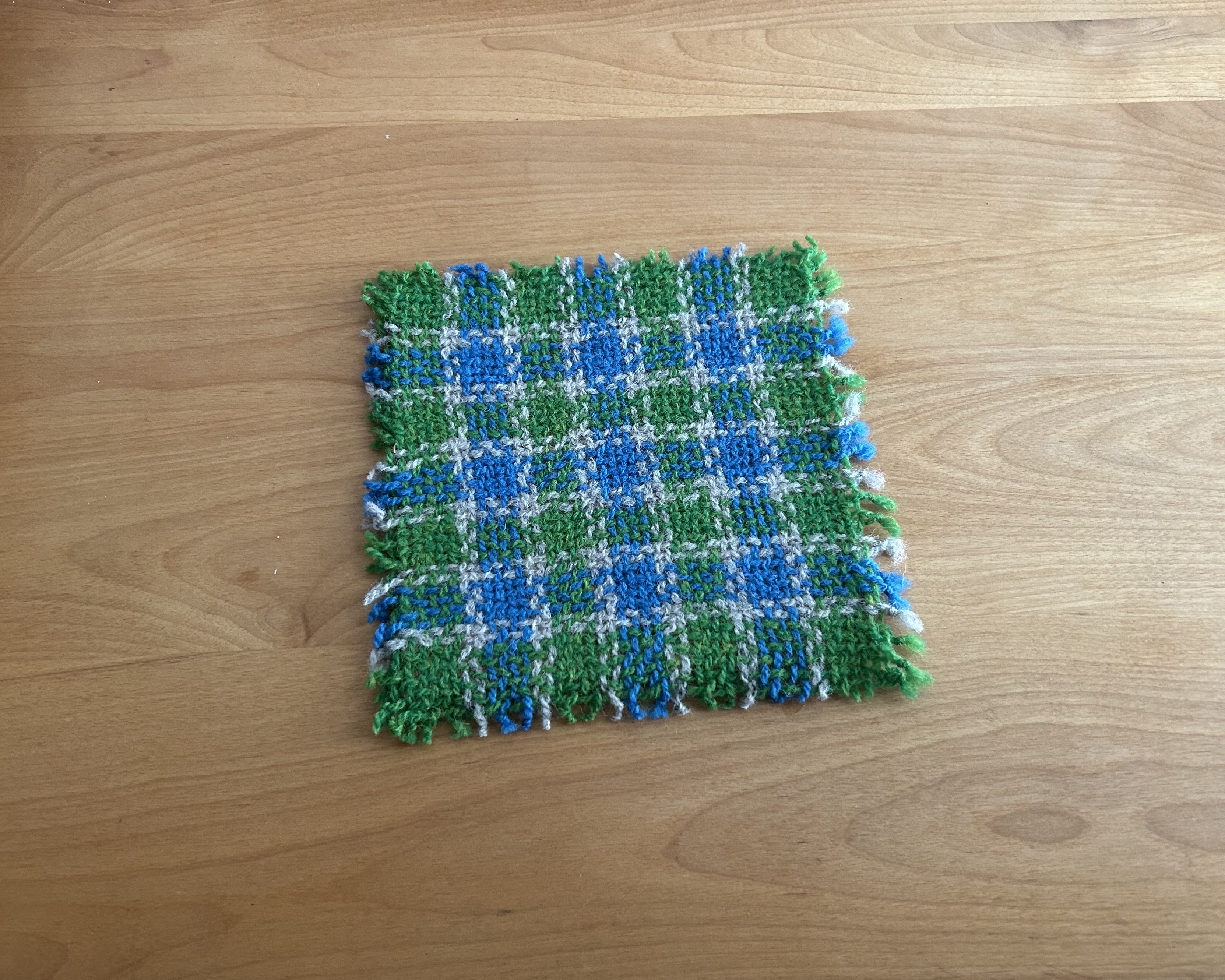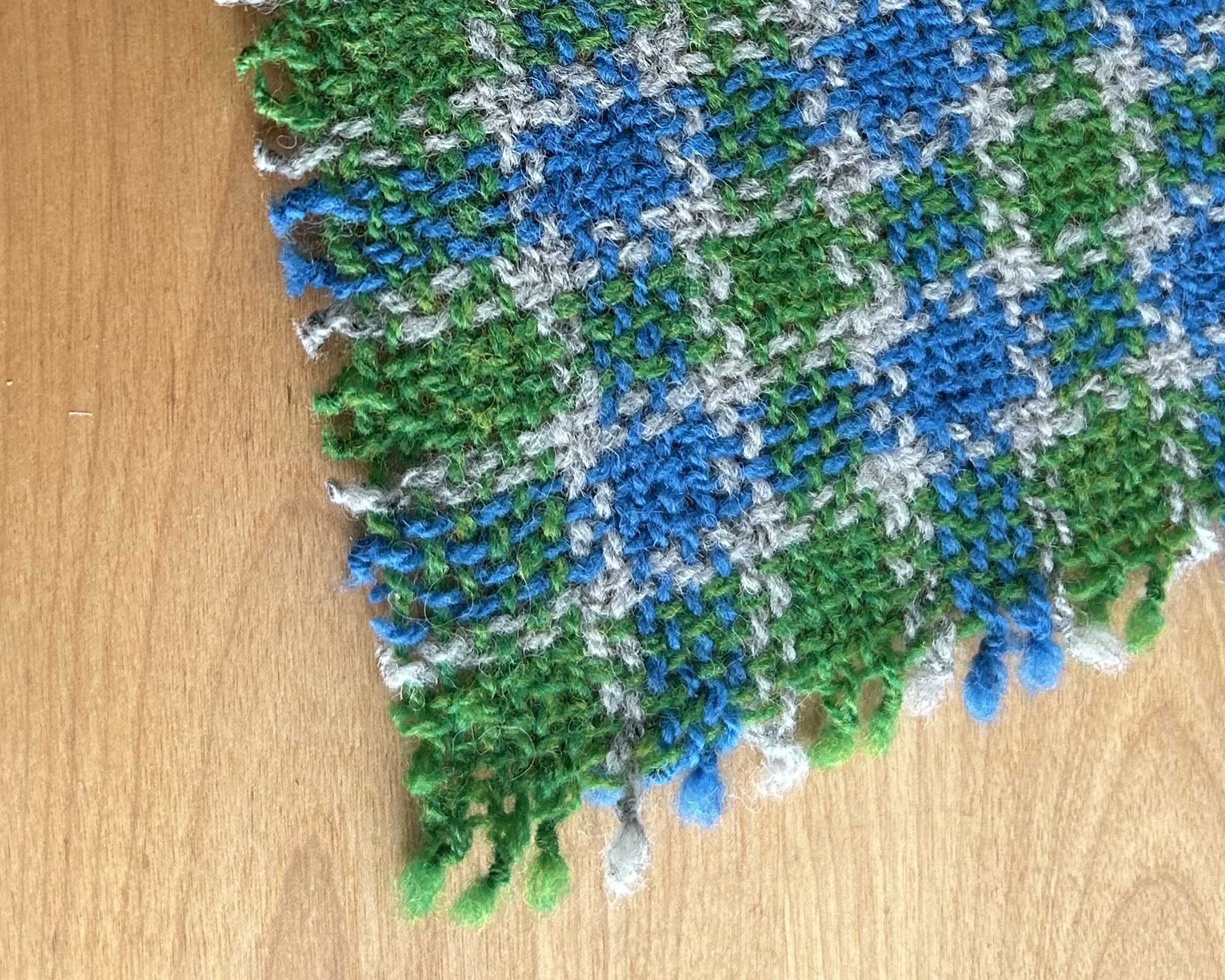 This oversized scrappy wool mug rug is a continuation of my summer of exploring new and old weaving techniques. Additionally, using loom waste from previous projects, these little plaid beauties allow me to adhere to my commitment of using mainly sustainable yarns by using these scraps to reduce my contribution to landfills. In the process, I hope to inspire others to think twice about what they throw away.
