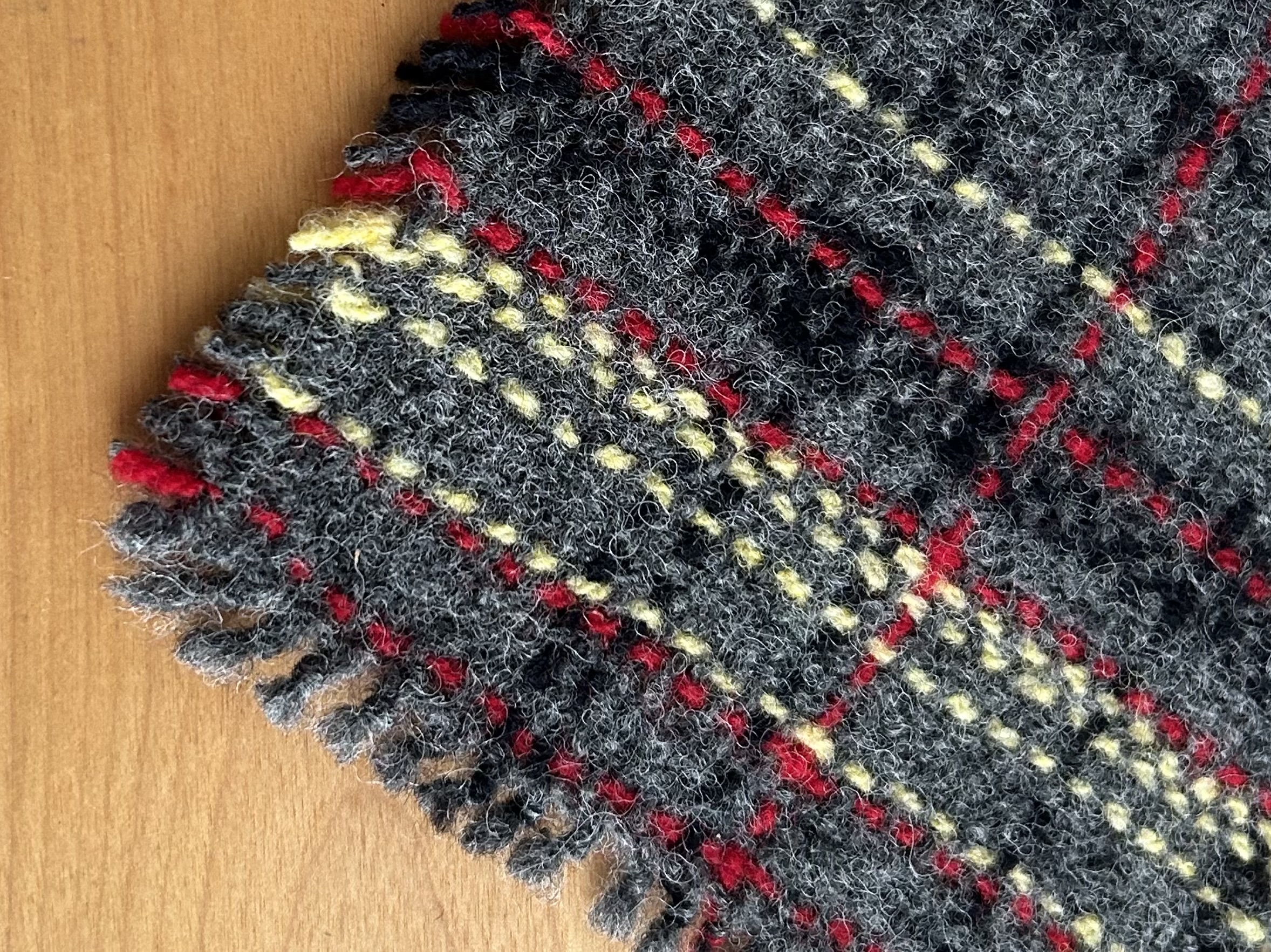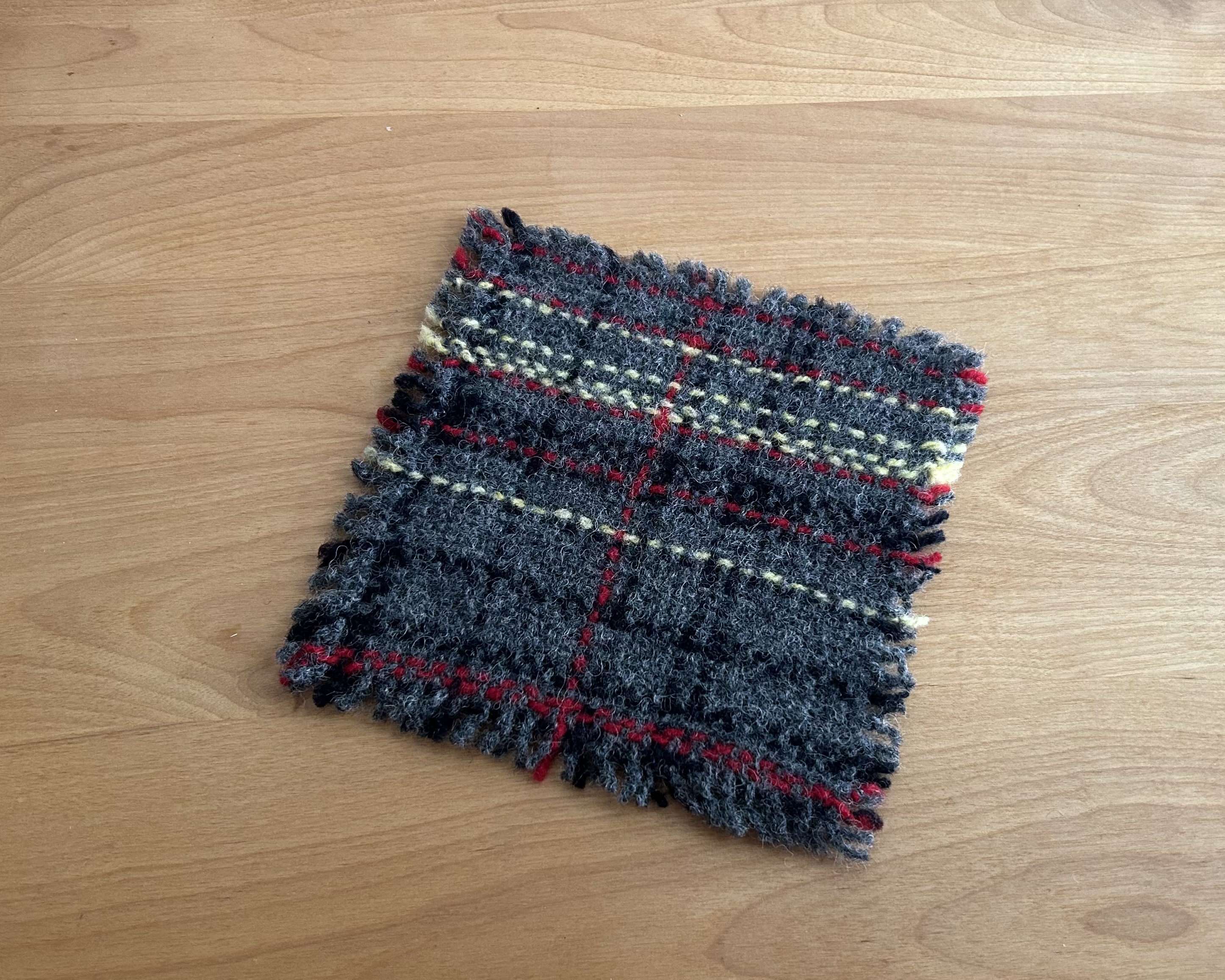 This oversized scrappy wool mug rug is a continuation of my summer of exploring new and old weaving techniques. Additionally, using loom waste from previous projects, these little plaid beauties allow me to adhere to my commitment of using mainly sustainable yarns by using these scraps to reduce my contribution to landfills. In the process, I hope to inspire others to think twice about what they throw away.