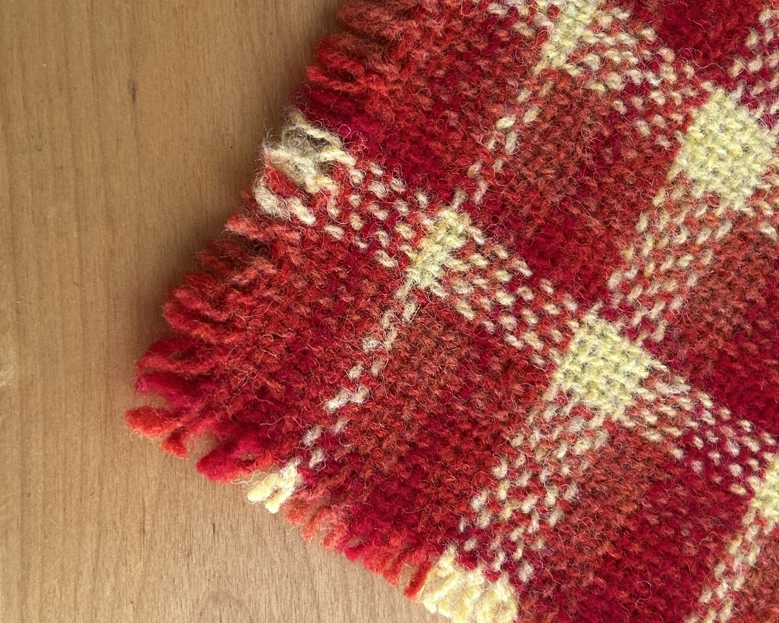 This oversized scrappy wool mug rug is a continuation of my summer of exploring new and old weaving techniques. Additionally, using loom waste from previous projects, these little plaid beauties allow me to adhere to my commitment of using mainly sustainable yarns by using these scraps to reduce my contribution to landfills. In the process, I hope to inspire others to think twice about what they throw away.