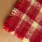 6-inch square felted wool mug rug with a cork base. Woven in a gradient study of red to yellow plaid