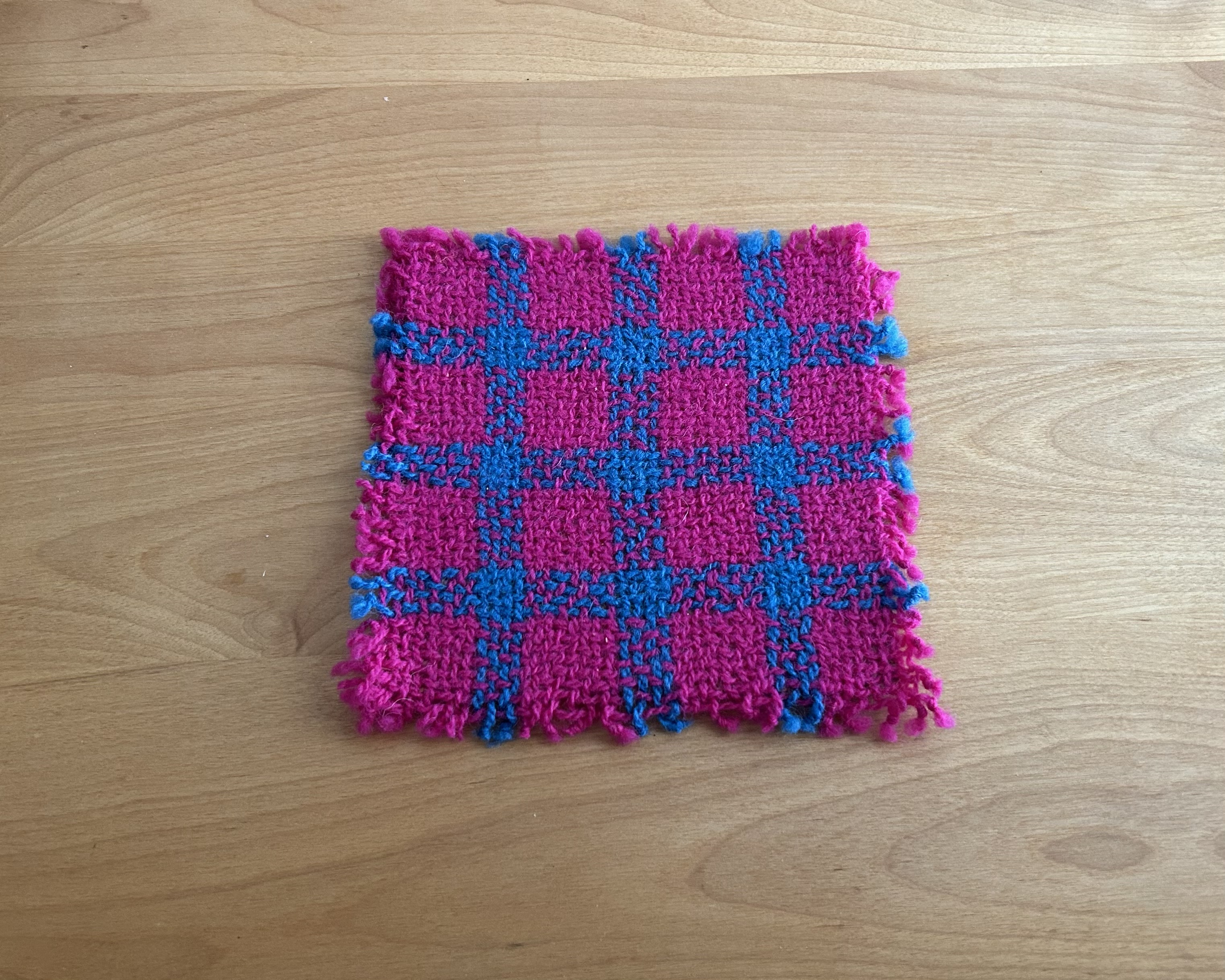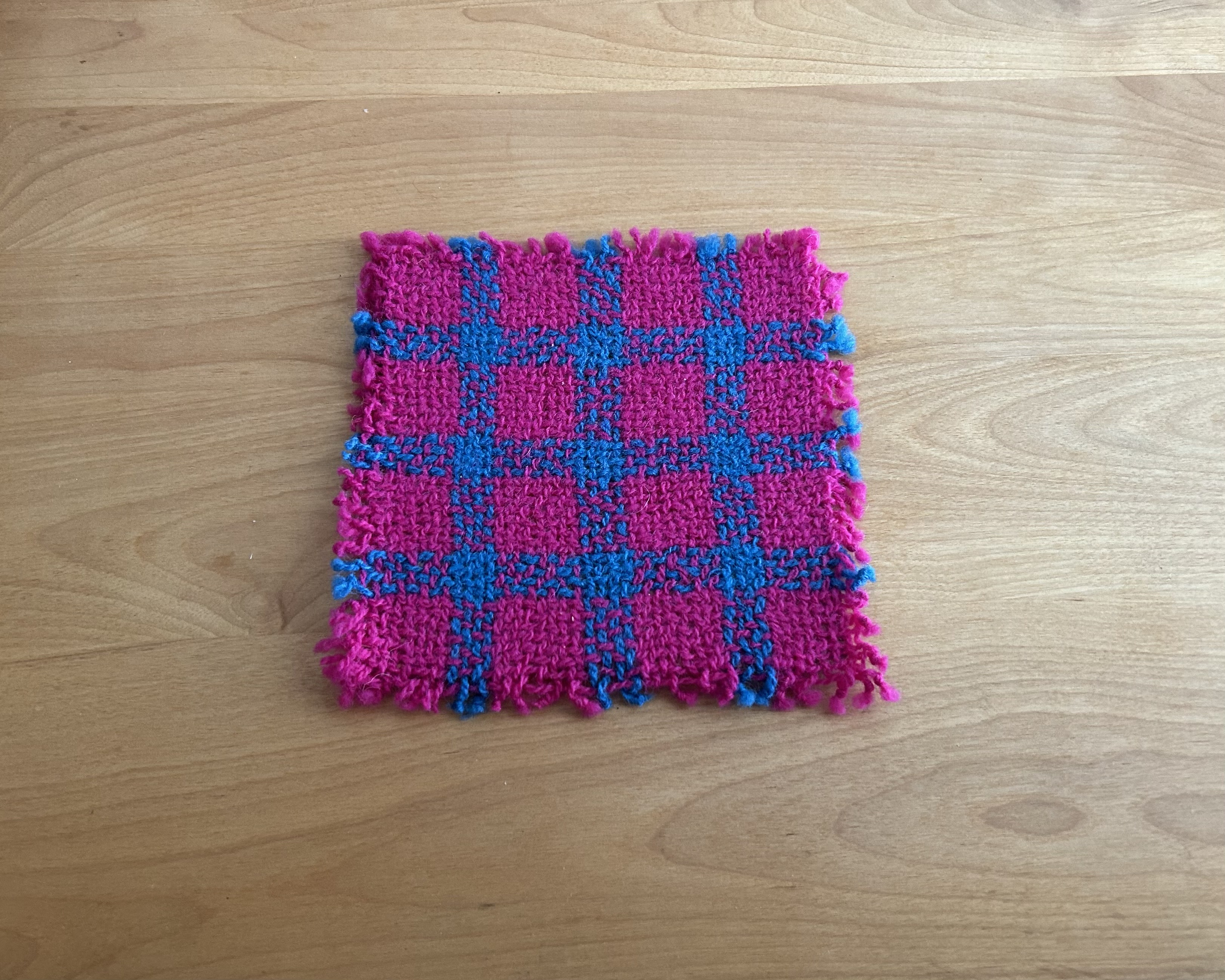 This oversized scrappy wool mug rug is a continuation of my summer of exploring new and old weaving techniques. Additionally, using loom waste from previous projects, these little plaid beauties allow me to adhere to my commitment of using mainly sustainable yarns by using these scraps to reduce my contribution to landfills. In the process, I hope to inspire others to think twice about what they throw away.