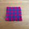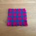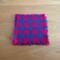 6-inch square felted wool mug rug with a cork base. Woven in a pink and blue window pane plaid