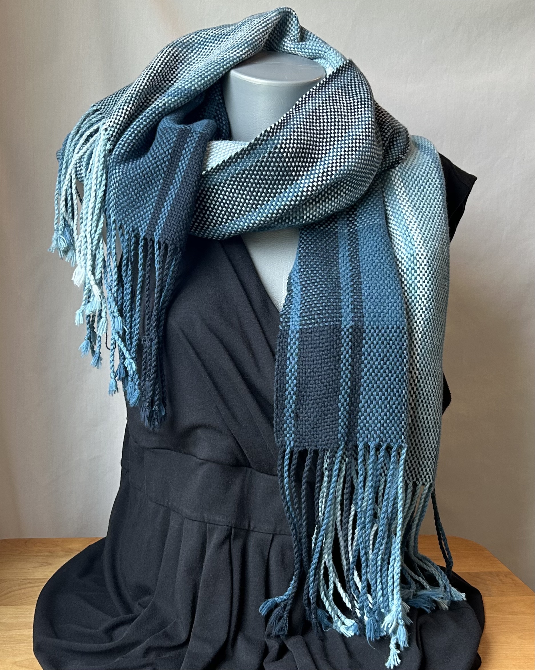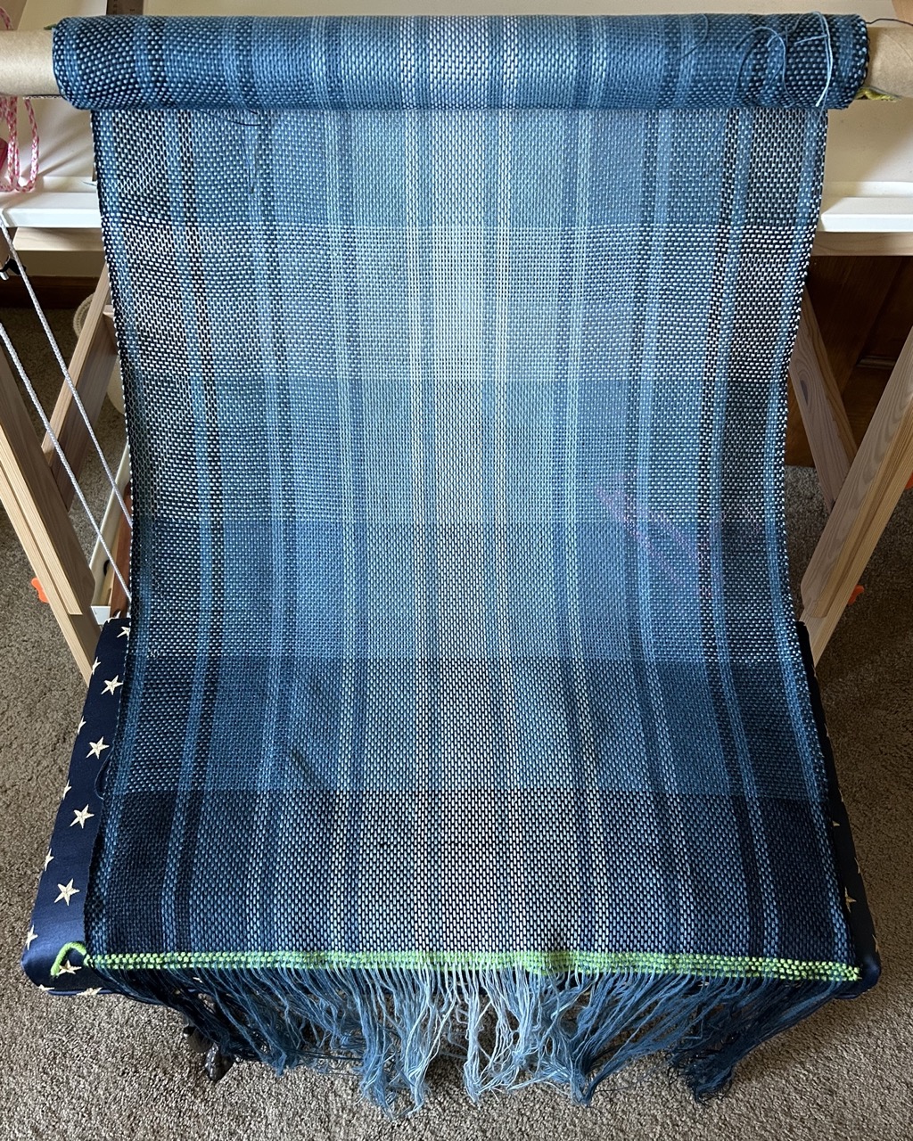 My woven products are laundered prior to being offered for sale. In addition to ensuring you receive a clean product that is ready to wear, “wet finishing” is an important step for any woven product. Wet finishing allows the yarns that have been under tension while on the loom to relax and for cotton or wool yarns it allows some shrinkage to occur that closes those open spaces you can see on the loom. The important thing to remember here is that while wet finishing often requires very warm to hot water, this is for the initial wash only. Continued exposure to warm or hot water may cause further shrinkage similar to accidentally shrinking a wool sweater.