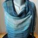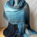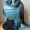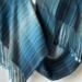 This incredibly soft drapey shawl was woven on my larger rigid heddle loom in five shades of 100% cotton yarn. This shawl is just the accessory your LBD needs for an outdoor or indoor event where the night air or AC is on the chilly side. In addition to the gradient changes drawing the eye in, the 6 inches of twisted fringe provides movement that also demands attention.