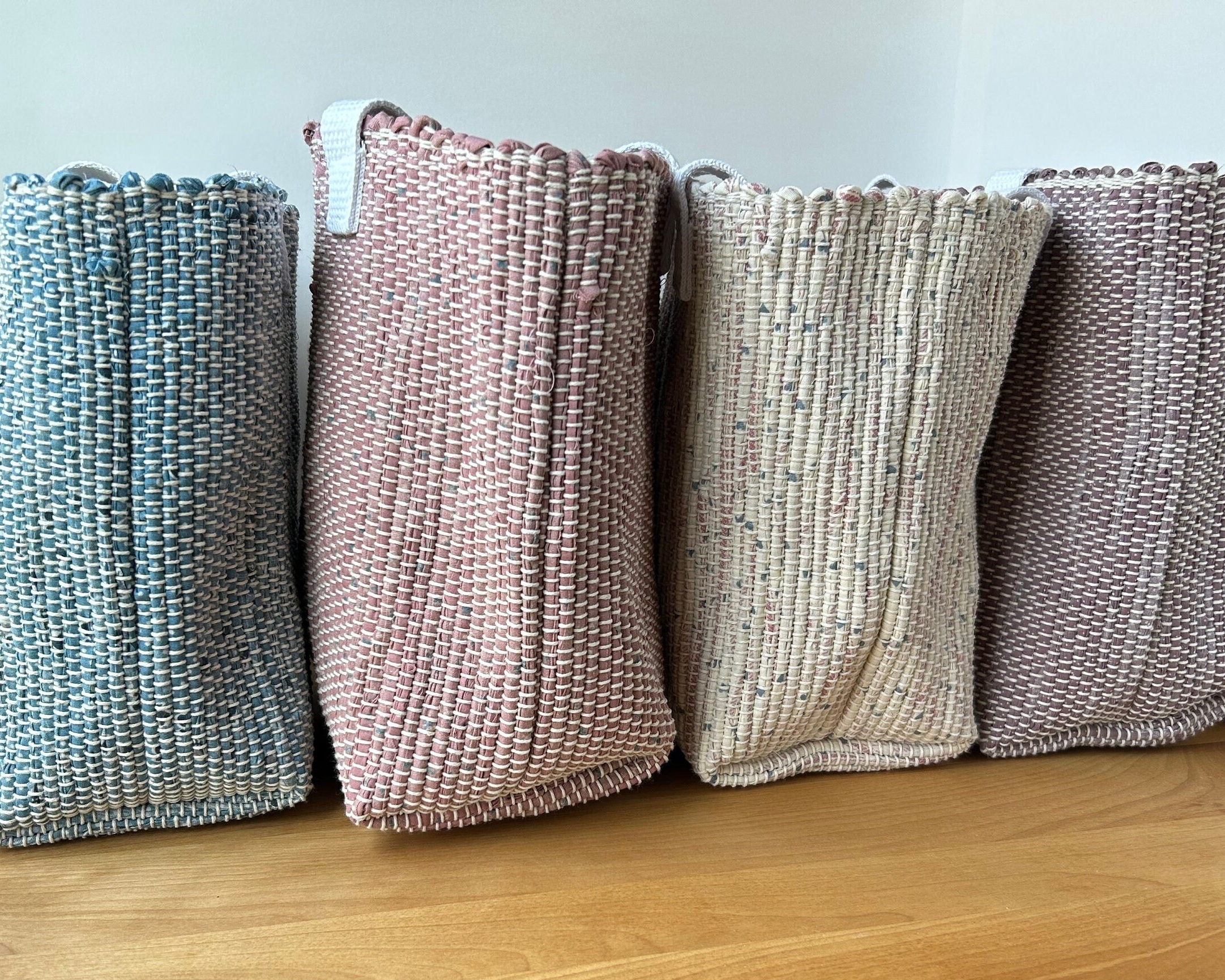 Lyon Handwovens is a fusion of my early love of all things textile, a two decade career in environmental consulting, followed by another decade in quality. This fusion has resulted in narrowing my focus in weaving to using sustainable yarns (wool, cotton, silk) up-cycled materials (VHS tape, commercial carpet yarn, plastic shopping bags) and repurposed fabrics (dead stock and remnants from professional decorators, estate sales, thrift shops). Sustainability, like most things is not static and this journey I'm on will require ongoing adjustments, new paths and learning from others. I hope you'll check in periodically to see how my journey is progressing.